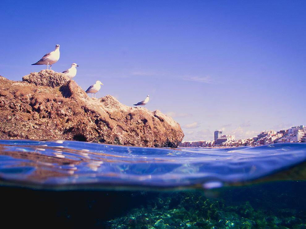 Un po' di snorkeling prima di pranzo per stuzzicare l'appetito? Sia i subacquei esperti che coloro che amano indossare gli occhialini e fare snorkeling saranno felici su questa spiaggia. Las Canteras vanta un'ampia varietà di flora e fauna marina, che può essere osservata senza bisogno di immergersi nelle profondità. Se lo desiderate, potete prenotare un corso di immersione presso una delle vicine scuole di immersione.