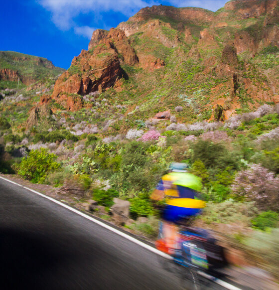 Percorrere una strada solitaria delle Isole Canarie in un giorno soleggiato, con una temperatura intorno ai 20°, senza quasi incrociare altri veicoli, scoprendo un nuovo paesaggio dietro ad ogni curva e scorgendo il mare all'orizzonte. Ci sono esperienze difficili da dimenticare. Ancora di più se fatte in sella ad una bicicletta da corsa. Le Isole Canarie sono piene di percorsi ideali per la pratica del ciclismo su strada. Strade asfaltate, pendii e dislivelli, che passano per valichi vulcanici e che costituiscono una grande sfida per ciclisti di tutti i livelli. Inoltre, le temperature stabili tutto l'anno e le scarse precipitazioni rendono possibile la pratica del ciclismo tutti i giorni dell'anno.